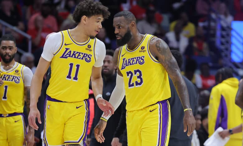 Jaxson Hayes and LeBron James of the Los Angeles Lakers